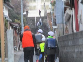 学校も7時前は、氷点下2度の寒い朝でした。校門前で矢野PTA会長さんや清島区長さん、先生方が、登校してきたみんなをあいさつで迎えました。