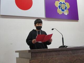 終業式では、児童代表として1年今村 柊馬君、3年片平 青君、6年市田 琳飛君が2学期に心に残ったことや努力したことを発表しました。