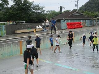 今日は、午後からみんなで浦城小学校のプール清掃に参加します。港小学校のプール施設が老朽化し、昨年度から浦城小学校プールを使用させてもらう予定だったのですか、市内全校水泳中止となっていました。