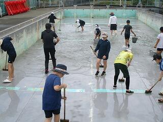 浦城小の先生方が事前にプール周辺の清掃を行ってくださっていたので大変助かりました。ありがとうございます。浦城小も昨年度は水泳指導ができなかったため、2年分の汚れを取り除くのは大変だったと思います。