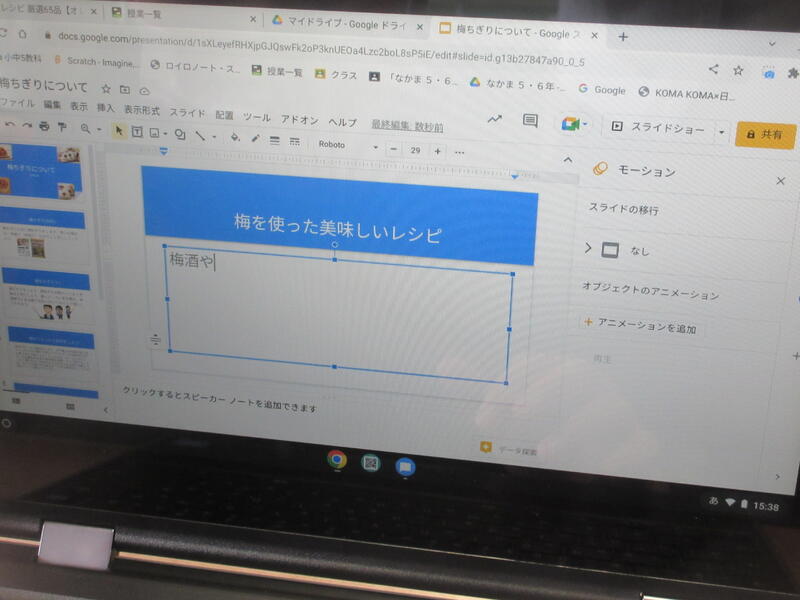 5・6年生は、総合的な学習の時間に、「梅」に関するプレゼンテーション(リーフレット)を作っています。港小では、これまで代々、梅林の管理をしたり、地域の方と梅ちぎりをしたり、梅に関する学習をしたりしてきました。パソコンを活用しての作成に子どもたちは意欲をもって取り組んでいます。どんなプレゼンテーションができあがるのか楽しみです。