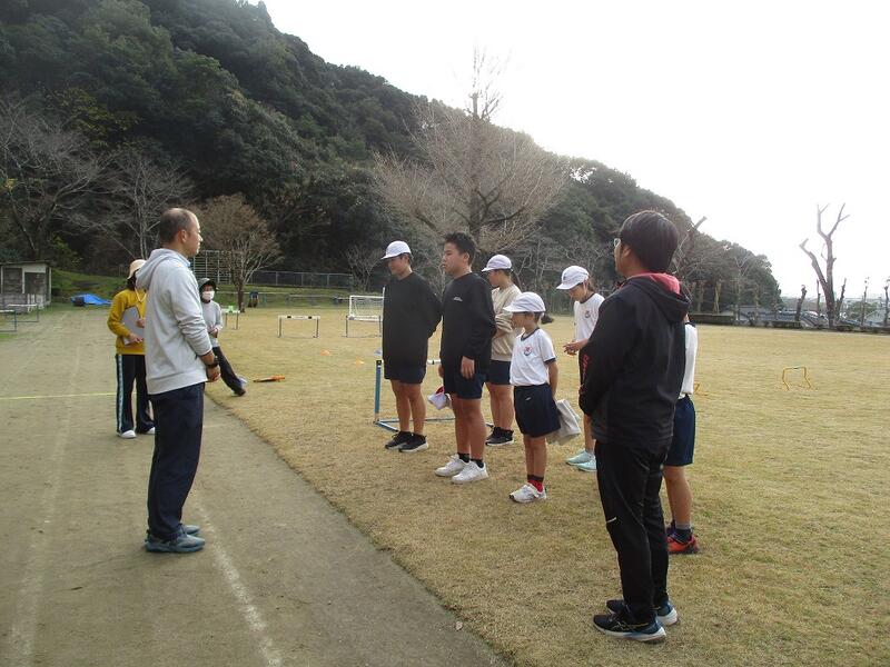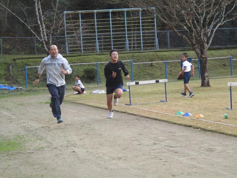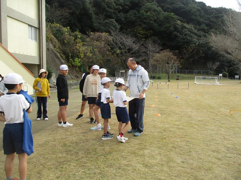 12月23日、体育振興指導教員の富島中学校の体育の先生が、港小学校の体育の授業に来てくださいました。今日が最後の授業でした。全部で7時間の体育の時間(陸上運動)にご指導いただきました。