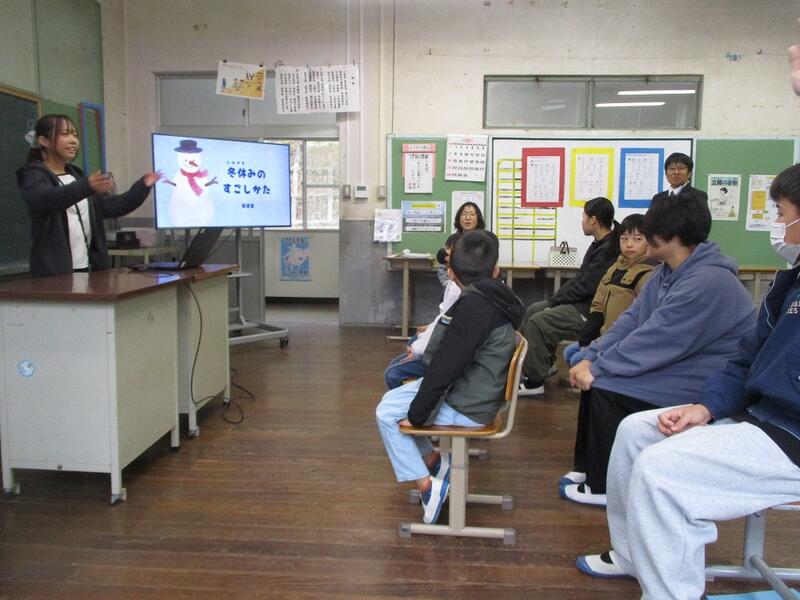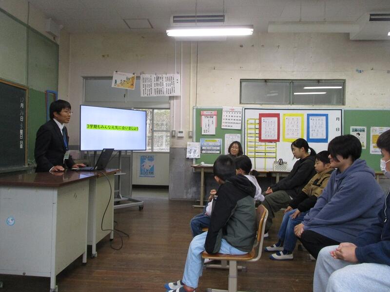 代表児童による作文発表では「運動会で一番心に残っていることは、みんなが励まし合ったこと」「学習発表会では、港地区の魅力コマーシャルづくりが難しくて諦めかけていたけど友達と協力し合って完成してうれしかったこと」など、充実した2学期の学びについて発表しました。すばらしい作文発表でした。また、担当の先生から、冬休みの安全な過ごし方や健康によい生活、学習面などについてのお話もありました。みんな真剣にお話を聞いていました。