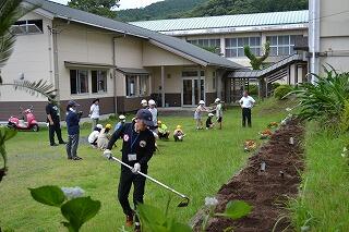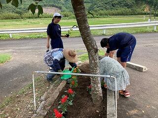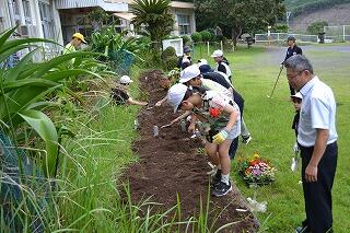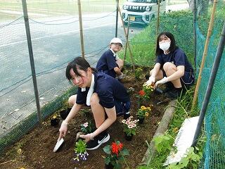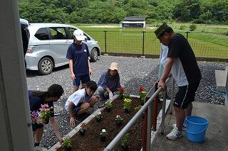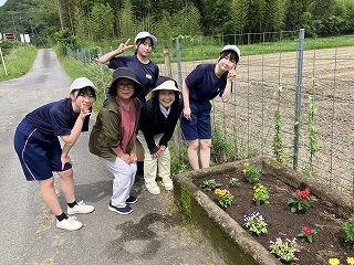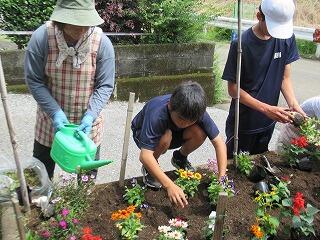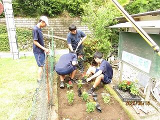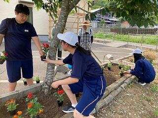 中学部は今年も地域に出向いて、花植を行いました。気温がかなり高く暑い中での作業でしたが、体調はお変わりありませんか?事前準備もしていただいたようで、感謝しております。生徒たちに、今後意識して水やりや草取りをさせたいところですが、うまくいかないところもあります。またご協力ください。ちなみに学校の花壇は半分が小学部、半分を中学部が植えたのですが、その夜珍客(鹿)に花壇を荒らされ、花をいくつか食べられました。そのため翌朝ネットを張りました。せっかく咲いていたあじさいはすべて食べ尽くされました。(涙) 地域の花壇はどうでしょうか?