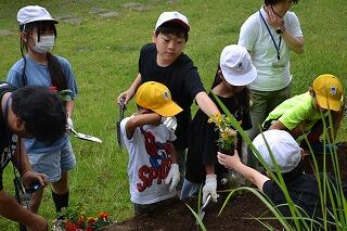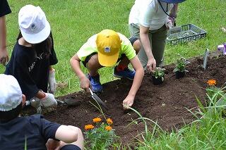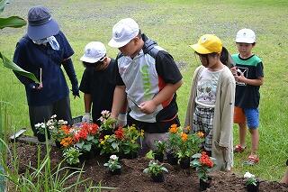 以前は、地域の方にも声をかけて一緒に学校の花壇に花を植えていたようですが、ここ最近は中学部が地域に出て公民館等の花壇に地域の方と一緒に花を植えるようになってきています。18日(水)は小学部が学校の花壇、中学部が地域に出かけて花を植えました。花壇の土を花が植えやすいように整備していただいた地域の皆さんありがとうございました。今回は小学部の花植えの様子をご紹介します。