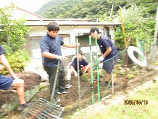 | 中学部バケツ苗 | 小学部バケツ苗 | 草刈り終了してます | ネットで鹿から花を守る |