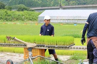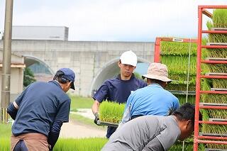 | 稲刈り要領を説明 | 苗(稲)を運ぶ | 中学生お手伝い① | 運び終わった苗(稲) |