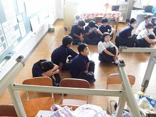 7月4日(金)に不審者対応の避難訓練を行いました。昨年もこの時期に行いましたが、今年は、スクールサポーターの方の迫真の演技に取り押さえるまでにかなり手こずりました。その写真がないのが残念です。中学生は、臨機応援な行動で小学部棟に避難し、バリケードを作り放送があるまで、小学生をリードしながら待機できました。その後、体育館で講習を受けました。ここでは小学生がモデルとなって活躍してくれました。