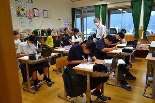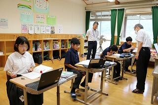 7月11日(金)は、教育委員会・教育事務所合計7名の方が来校され、黒岩小中学校の学校経営の説明、授業の様子を見ていただきました。特に小学4年生は、算数の授業でたくさんの先生方が見守る中、3人それぞれで考え、発表し、力を合わせて正解を導き出していました。