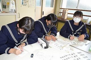 中学部では、毎年地域のお年寄りの方々へ年賀状を書いています。お年寄りの方々に心をこめて、年賀状を書いています。令和4年もよろしくお願いいたします。