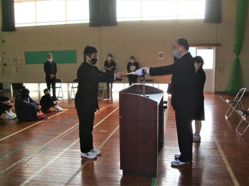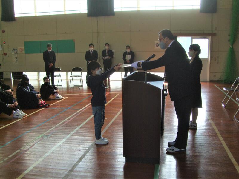 新入生入場の後、教科書授与や校長先生のお話、児童生徒代表による歓迎の言葉、入学生代表の言葉などがありました。