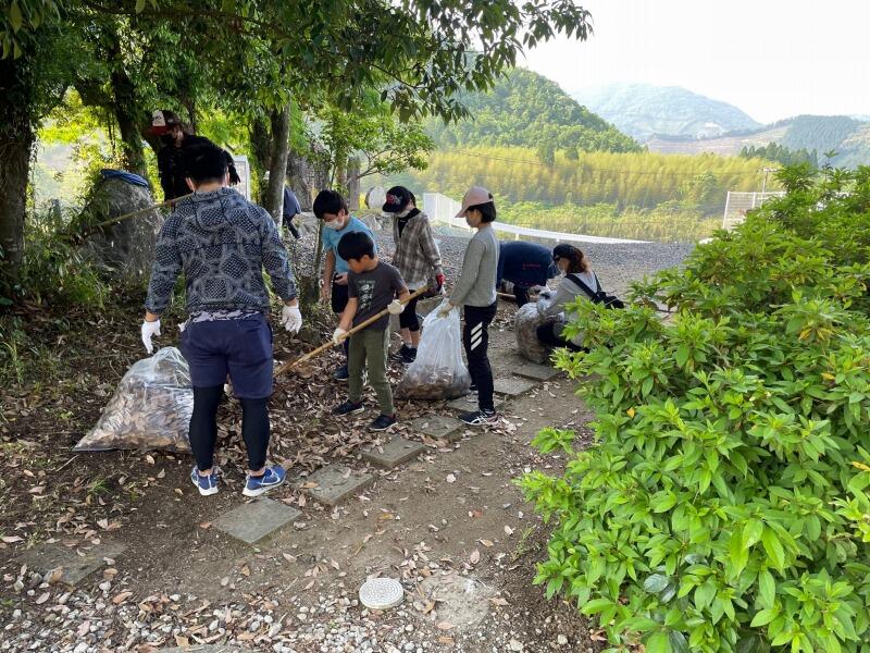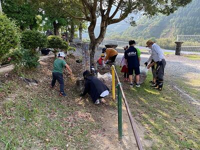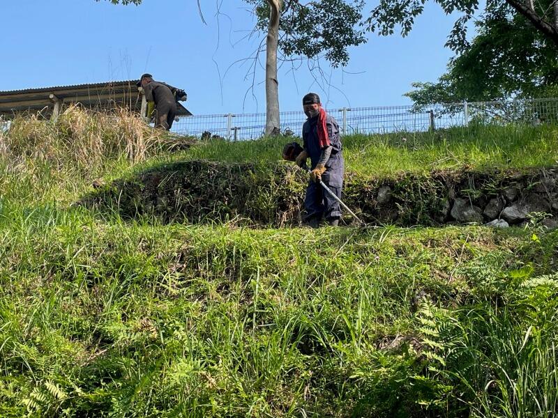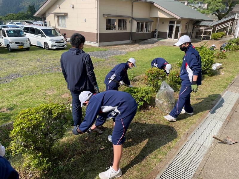 【暑い中で一生懸命に清掃に取り組む児童生徒】