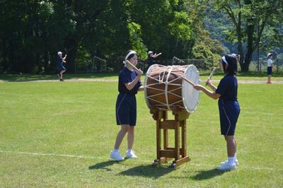 4月15日の11時40分から、地震・津波を想定した避難訓練が実施されました。小・中学生全員が真剣な表情で静かに速やかに避難し、実際の場面でも落ち着いた行動が取れるものと思われました。