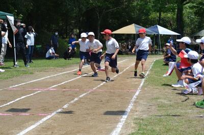 昼休みに、みんなで集まって「タグ取り」をしました。梅雨のすっきりしない天気でしたが、久々に雨が降らずに子どもたちは精一杯走り回って、タグ取りを楽しみました。