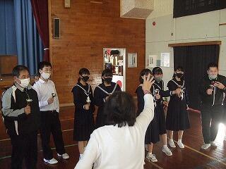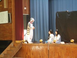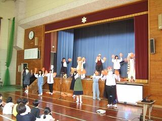 15日(月)に鑑賞教室を行いました。「わらべ歌の会」の方々に来ていただき、いろいろな童謡を歌ったり、ハンドベルで演奏したりしました。楽しい時間を過ごすことができました。