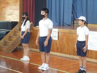「エール交換」は、毎年体育祭で行っていますが、はじめはうまくいきませんでした。今後、もっと練習をしていき、体育祭本番では、気持ちのこもったエールがおくれることでしょう。