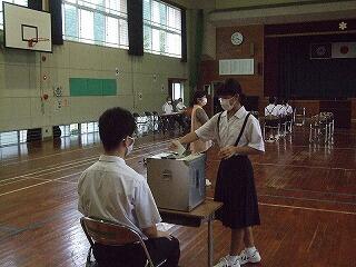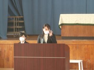 中学部では、生徒会が新しい役員を選び、新組織での活動が始まります。そのための選挙が行われました。それに先立ち、立候補者による立会演説会が行われました。