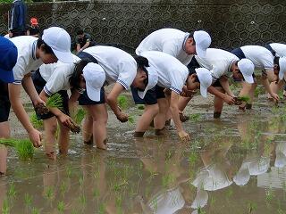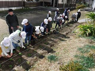 平日ということもあり保護者や地域の皆様の参加は少なかったですが、児童生徒と一緒に植えていただきました。児童生徒は毎年経験しているのでとても上手でした。