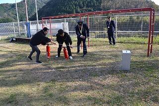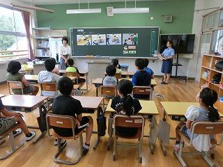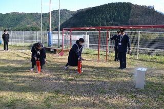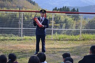 また、延岡消防署の方にも来ていただき、避難訓練をする意味や火災の怖さ、家には火災報知器を設置する義務があること等のお話を聞きました。水消化器を使った実技も代表児童と職員で体験しました。万一学校で火災が発生したらどう避難すればよいのかについて考えるよい機会となりました。