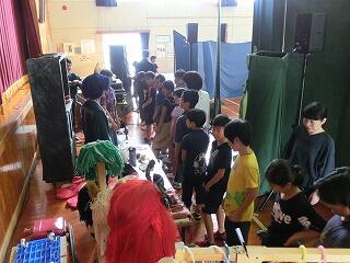 児童が劇の中盤とフィナーレに参加させてもらったり、公演後に舞台裏を見学させてもらったりと、とてもよい体験になったようでした。保護者や地域の皆様もたくさん見に来られていました。ありがとうございました。