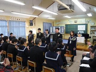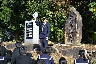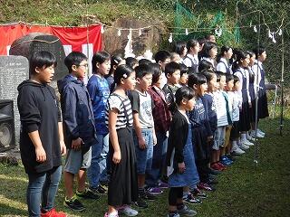 この日、郷土の代表的な詩人である「渡辺修三」を顕彰する詩碑祭が行われ、本校の児童・生徒が渡辺修三作詞の本校校歌を斉唱しました。本校以外にも市内の多くの小・中・高等学校の校歌を作詞されている詩人です。