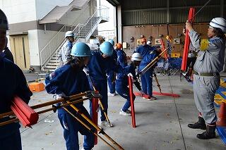 着衣した状態で水に入ることの危険性を体感し、緊急時にどう対応したらよいか学ぶ目的で実施しました。服が濡れると約3倍重くなり動きにくくなること、ペットボトルやビニル袋を使っての浮く体験をしました。
