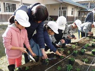 植えた苗は、寒い冬を乗り越えて、春にはきれいな花を咲かせてくれることでしょう。子どもたちも花たちに負けないように、寒い冬を元気に乗り切ってほしいです。
