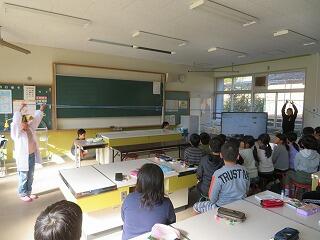 養護教諭が子どもたちに、11月の保健目標にあわせて「正しい姿勢」について話をしました。「立腰」を意識するため、子どもたちは「足裏ペタ・背筋ピン・お腹グー・目パーパー」の合い言葉で取り組んでいます。子どもたちが目にするように、小学校校舎中央階段の2階にある掲示板に資料を掲示しています。