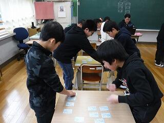 クラブ活動では、百人一首しました。子どもたちは真剣な表情で取り組んでいました。