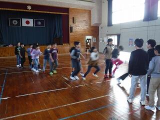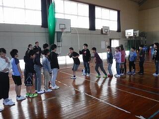 子どもたちは、体育の時間や昼休み時間に長縄飛びにチャレンジしてきました。1・2年生チームと3~6年生チームで3分間でたくさんの回数を跳ぼうと取り組みました。1・2年生は5・6年生にコツを教えてもらいながらそれぞれがんばってきました。
