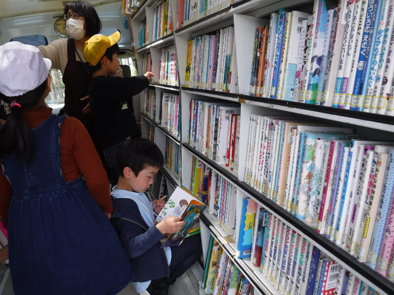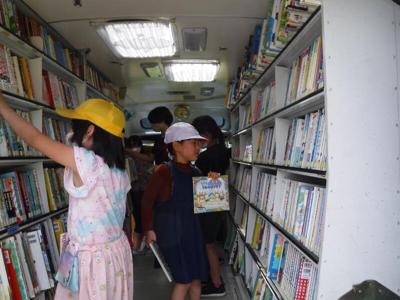 本日、移動図書館の「ふくろう号」が来ました。子どもたちは給食が終わると、一目散にふくろう号にある本を借りに行きました。いちばん多い子どもでは一人10冊借りていました。読書は心を豊かにしてくれるものです。できるだけ時間を見つけて読書に触れ合う機会をつくらせていきたいと思います。
