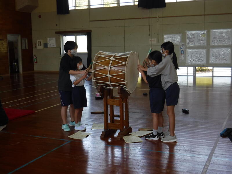 中学部のたたける生徒が小学部や中学部の児童生徒に太鼓のリズム打ちを教えたり、いっしょにたたいてあげたりしました。21日(日)の本番に向けて一生懸命練習に取り組みました。