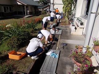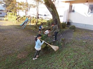 少ない人数でも「学校をきれいにしよう」と朝のボランティア活動をがんばっています。