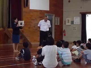延岡地区安全協会黒岩支部の皆様が来校されて、子ども達に「安全用ライト」をくださいました。ありがとうございました。