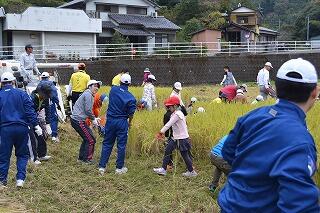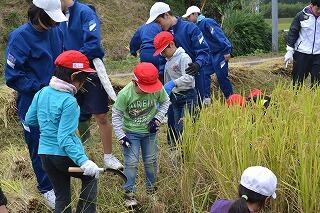 天気が心配でしたが、地域の方々や保護者の協力のおかげで無事に稲刈りをすることができました。