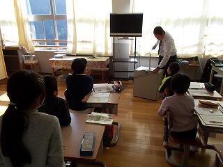 「ふるさと教育推進事業」で興電舎の甲斐社長様と佐藤様が話をしてくださいました。