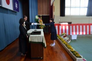 その後、卒業記念品授与があり、延岡市の歴史の本やPTAからの記念品が贈られました。