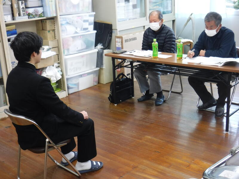 中学3年生は高校入試を前に、地域ボランティアの方、2名に来ていただいて、面接の練習を行いました。3年生の生徒は、質問されたことに一つ一つていねいに受け答えしていました。練習と分かっていても本番同様、緊張感をもって臨むことができました。