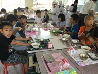 2学期がスタートして給食も始まっています。小学生部、中学部ともにおいしくいただいています。