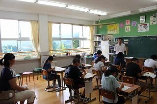 児童生徒3名が、2学期の抱負を発表しました。始業式終了後には英語弁論大会に向けての練習がありました。