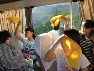 バスのなかでも元気です。