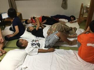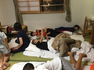 中学部の宿泊学習では、1日目に登山を予定していましたが、雨の影響で沢の橋が流され、途中で引き返しました。頂上での素晴らしい景色を見ることができなかったのは残念です。帰ってきたら施設内で交流会です。本校生徒と恒富中学校の交流も深まった楽しい2日間でした。
