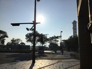 ホテル前です。快晴です。