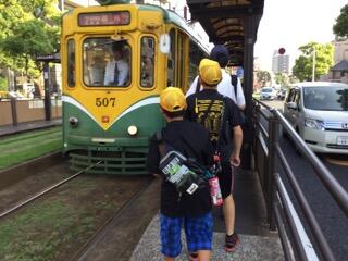 鹿児島市電を利用して移動します。
