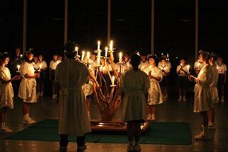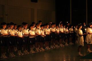 恒富中学校と黒岩中学校の合同でキャンドルのつどいを行いました。第1部・第3部は、静かな雰囲気の中で、第2部は2校の交流を深めました。