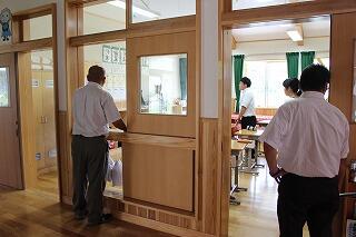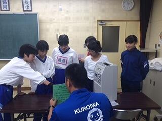延岡警察署から講師を招いて不審者対応避難訓練を実施しました。不審者が中学部校舎に進入したことを想定して、児童生徒・職員の動きを確認しました。不審者の確保後は、体育館で講話をしていただきました。