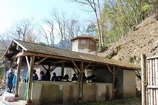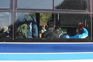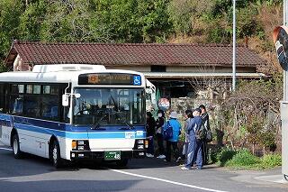 中学部は、祝子川キャンプ場で送別遠足を行いました。交通手段は、路線バスを利用しました。路線バスに乗るときには、小学部児童が、バスの乗り方の学習も兼ねて、見送りに来ていました。