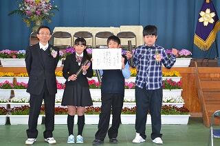 市善行児童生徒表彰式があり、本校6年生児童が表彰を受けました。「家族思いで、家業の手伝いを積極的に行い、家族を助けている。また、遠距離通学にもかかわらず、朝早くから登校して校内外の清掃ボランティア活動に取り組み、美しい学校づくりに貢献している。温厚な人柄で人に優しく、下級生からも慕われている。」という理由での受賞です。市内からは、個人の部(小学生3名、中学生3名)、団体の部(中学校1校)が表彰されました。