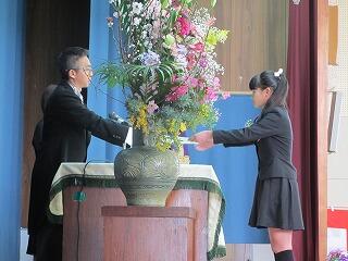 延岡市立黒岩小中学校(中学部)の卒業式が行われました。小学部の児童もこれまでお世話になった先輩方をあたたかく見送りました。