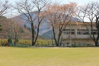 グラウンドの桜の状況は、ヤマザクラは満開、ソメイヨシノは今週末が見頃です。